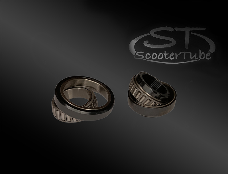 Cuscinetti a rulli conici (inferiore + superiore) per Piaggio Zip, Gilera Runner, Piaggio NRG, Vespa e la maggior parte degli scooter del gruppo Piaggio, completo di ghiera di bloccaggio.